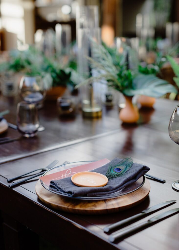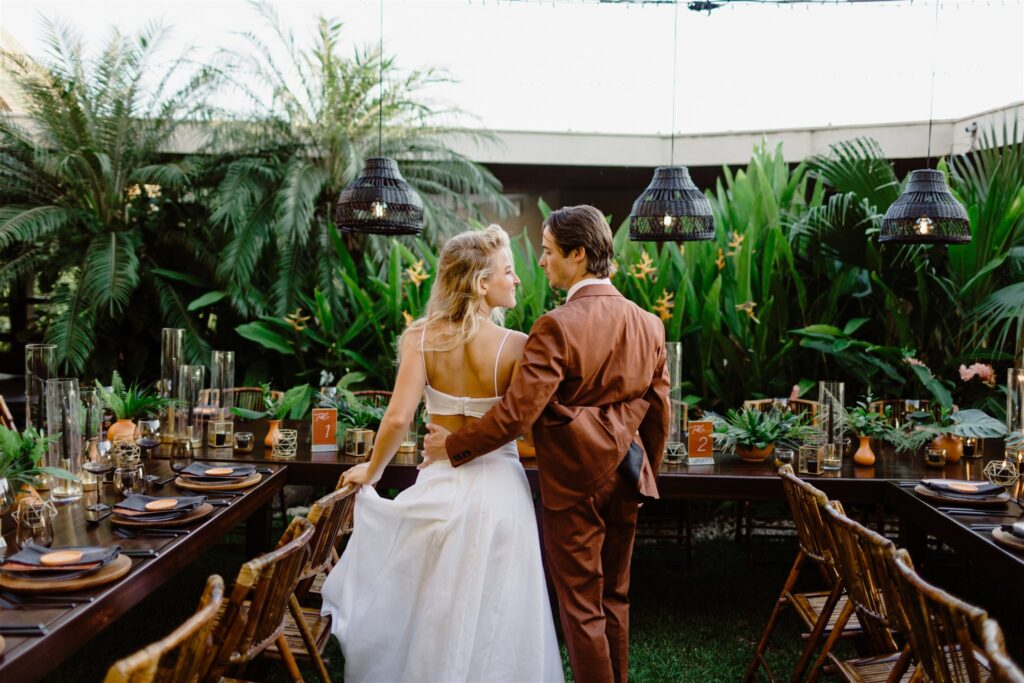 Katie and Justin’s reception was a lively fiesta, complete with a dark tropical mood, and the rhythmic beats of local music.